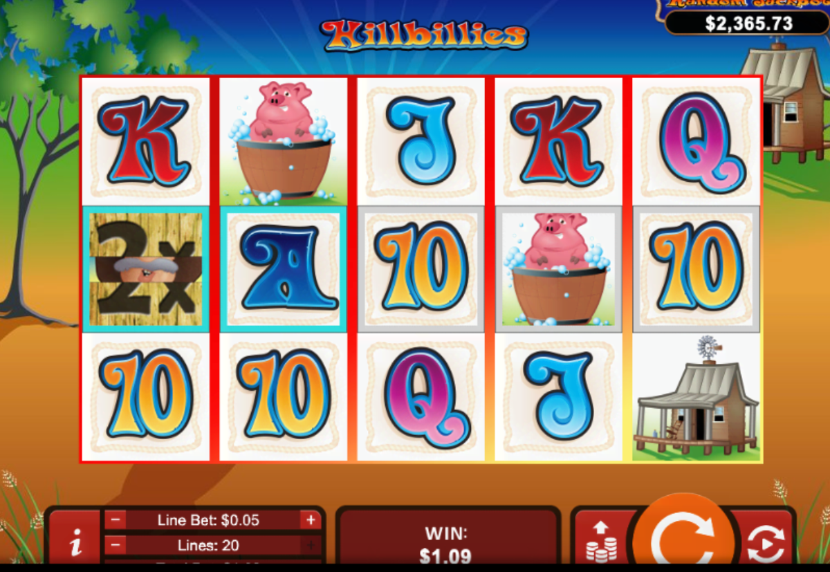 Betting on this Appalachian-themed online slots is fun and there are a large range of wagering options. Wager as little as one penny playing Hillbillies and as much as one hundred twenty-five dollars. The exact coin denominations are one penny, $0.02, $0.03, $0.04, $0.05, $0.06, $0.07, $0.08, $0.10, $0.25, $0.50, $1, $2.50 and up to five dollars per pay line.