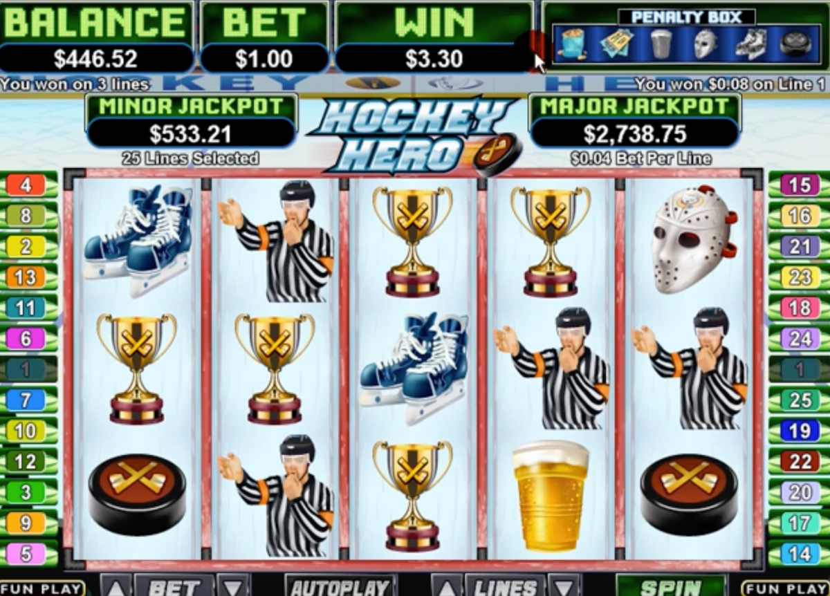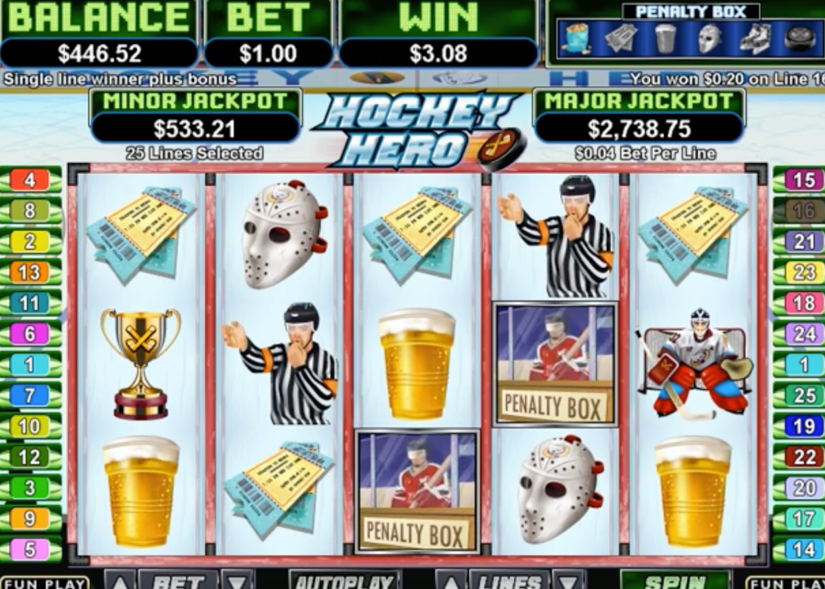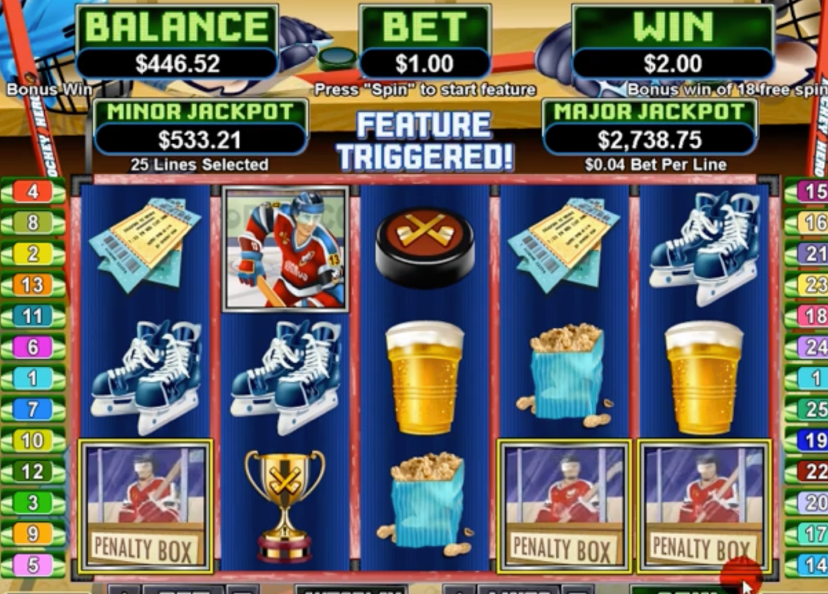 Remember, Hockey Hero was made over a decade ago. We still had the same heroes in Hockey like Mike Bossy and other notorious hockey players. However, Realtime Gaming (and other software developers at the time) did not have the ability to create and develop a slot machine with 3D graphics. Now that we got the cons out of the way, let’s talk about the pros and about winning. Look to trigger one of the two random progressive jackpots. When you play the game, you will see the minor and the major progressive jackpots. As a result, you will qualify to win either progressive jackpot whether you are betting one penny or playing for high stakes.