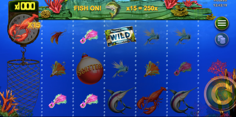 In the Hooked slot, the wild symbol is the most profitable. If this symbol appears on all five positions of a payline, the payout will be 40 times the winning bet. The lobster is the highest paying regular symbol with 16 times the bet, followed by the swordfish with 14x and the bass with 12x the bet.