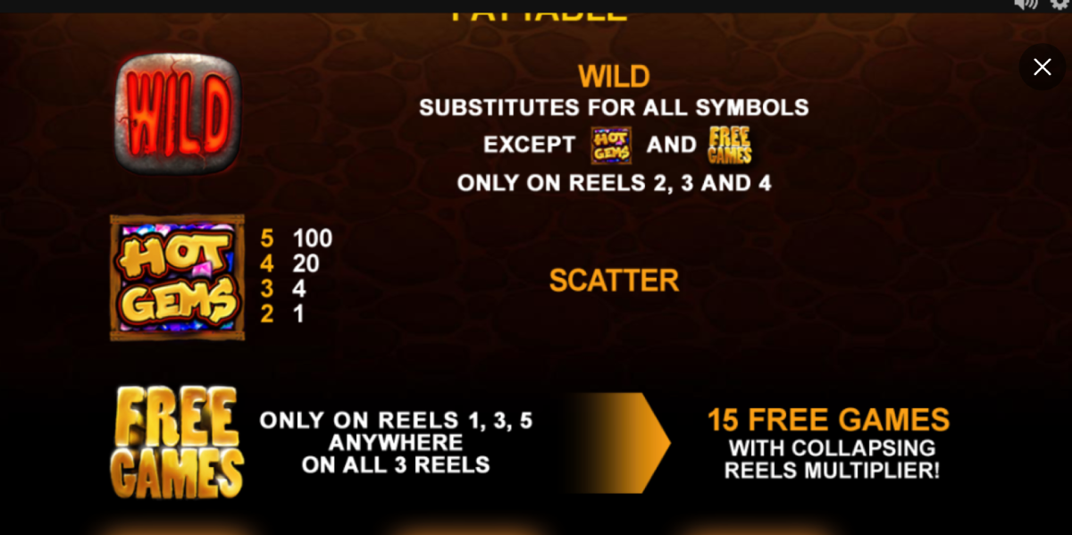 Hot Gems Xtreme slot has an All Ways Pays game engine. Basically, if you land 3 or more matching symbols (unless it’s the miner symbol which only requires 2), on adjoining reels starting from the leftmost reel, you win. The game starts with 6 reels and 4,096 ways to win, but it has the potential to increase.