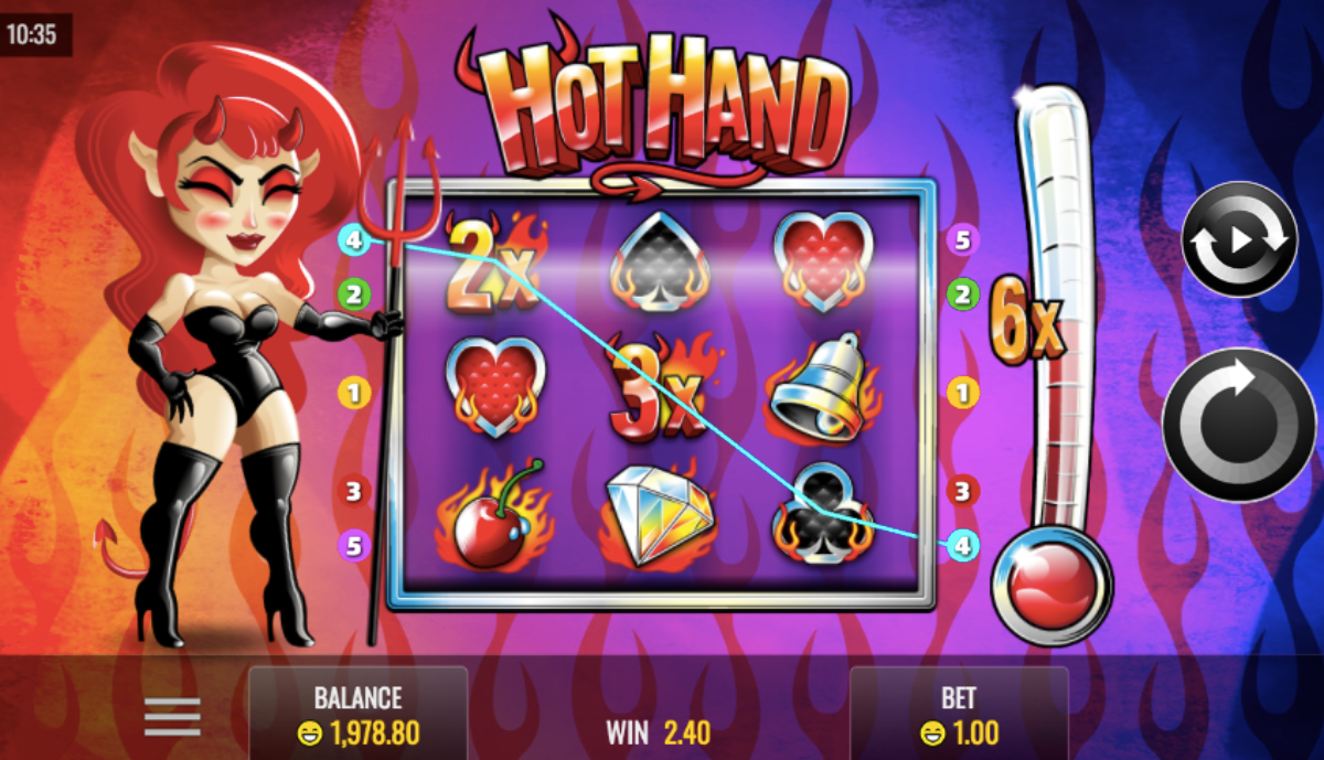 As you play Hot Hand, you will see a thermometer. In the thermometer, you will see the mercury increase and decrease. So try to turn the heat up on the thermometer so you can score big multipliers. In addition to adding to the 2X multipliers, these symbols also act as wilds. As a result, when you land the wildcards, they substitute for all of the other icons to form a winning combination.