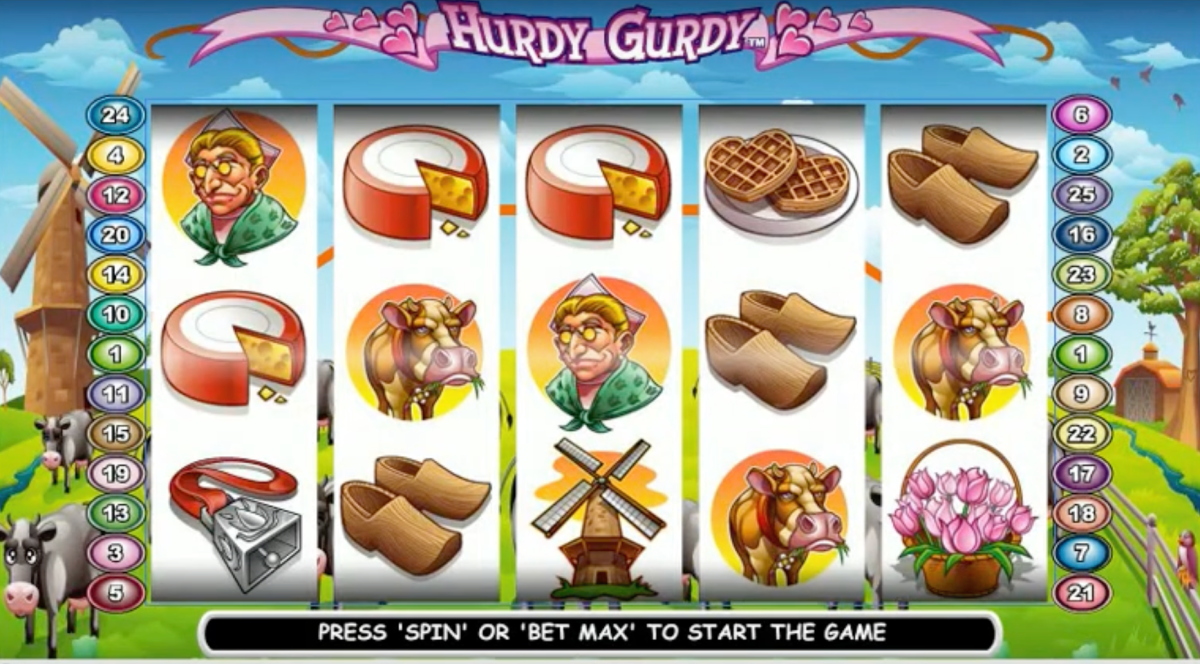 Hurdy Gurdy is an online video slot game that can be played in your Internet browser, on your desktop computer/laptop, on your tablet, and on your mobile Smartphones. WGS software powers this five reel, twenty-five pay line slots game.When you spin the reels playing Hurdy Gurdy you will see that there are tripling-payout free spins to win, a bonus game, scatter symbols, wild icons, bonus games, and a Pick and Win bonus feature.