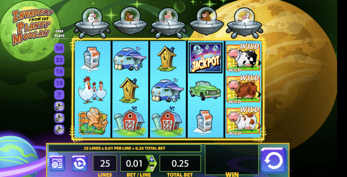 This game does not have a progressive jackpot, but there are some great wins and also great features when playing this game. Imagine the classic alien invasion story, which is what the storyline is about on this slot machine, but it has some amazing graphics and many ways to win plus it is incredibly fun to play.