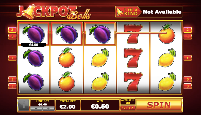 You can adjust your bet on each payline from 0.40 to 5 credits by using the Line Bet menu when playing Jackpot Bells video slot.At the start of each round, your chosen value will be multiplied by 5 and subtracted from your balance. You can view the total bet by checking the Total Bet tab.
