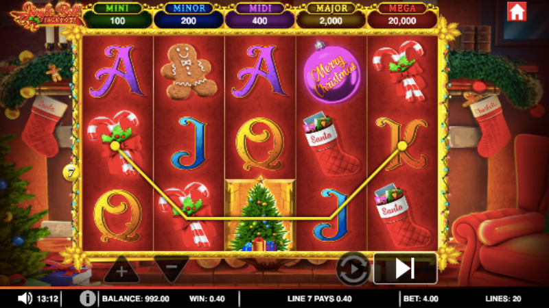 The minimum and maximum bets for Jingle Bell Jackpots are both 0.2 coins. There are 20 paylines in the game, which is made up of 5 reels, 3 rows, and 20 lines. The minimum wager is 0.2 coins, while the maximum possible wager is 25 coins per spin.
