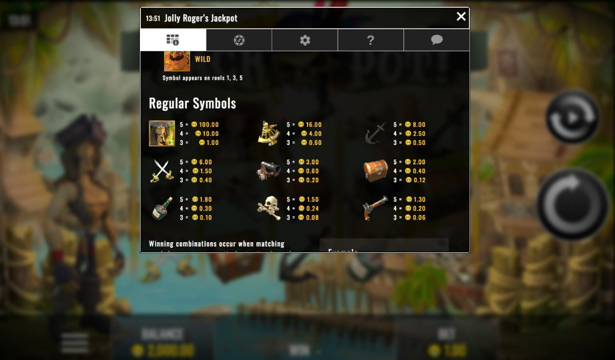 When spinning the reels playing Jolly Rogers Jackpot, you can win money by landing three matching symbols on the wheels. The wild icon in this game is the pirate symbol. When you land a pirate expanding wild symbol on the wheels, it will expand and create a cool animation. It will substitute the other icons to create a winning combination for you.