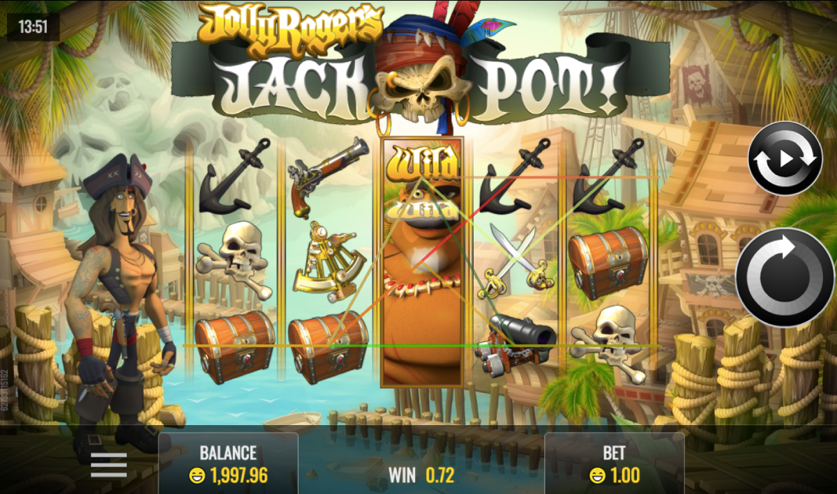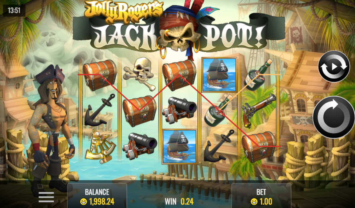 Jolly Roger’s Jackpot has five wheels along with fifty pay lines. Rival software provider powers this non-progressive Jackpot video slot game. Have fun with your mobile device or desktop computer. While there is no progressive jackpot at stake, there is a fixed coin jackpot plus other ways to win. You can trigger some large multipliers, win the red ruby free spins bonus game, hit the Wild Expanding Pirates Symbols and get to the Bonus Pirate Ships round where there are some nice sized wins.