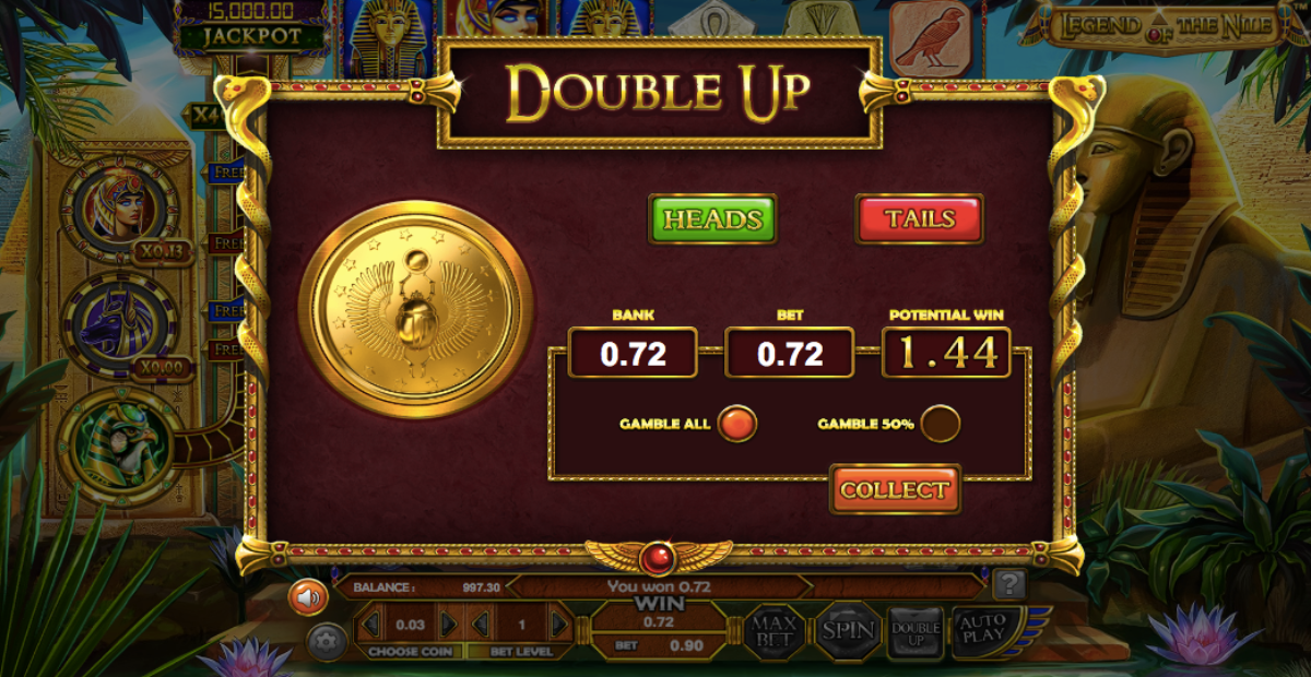 We are going to tell you how to win the jackpot playing Legend of the Nile. First of all, we want you to know there are fixed coin jackpots in addition to the progressive jackpot. Above all, you can win up to five thousand coins with the fixed coin jackpot. The progressive jackpot triggers at random. Therefore, there are no winning combinations to win the progressive jackpot.