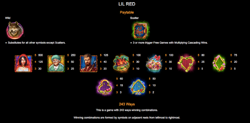 RealTime Gaming has created a slot game called Lil Red based on the story of Little Red Riding Hood. This game is full of great graphics and animations, and it has 5 reels and 243 winning ways. The Lil Red slot machine has different types of symbols. It also has several bonus features, like multipliers and free spins. You can even win cascading wins.