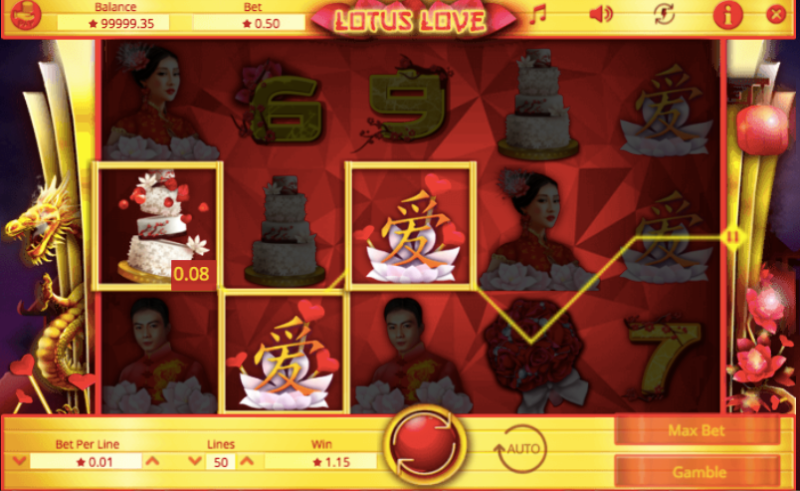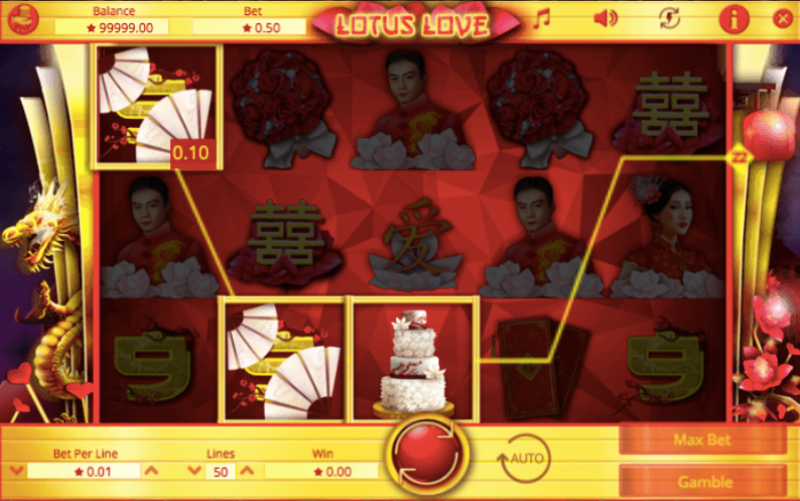 Lotus Love features a 5×3 reel play area with a Chinese Orient theme that is quite fascinating. The graphics are clear, although some players may find the red colour a bit too intense. The game’s charming music and love-related graphics can evoke a romantic atmosphere while playing.