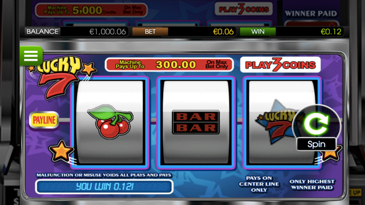 The Lucky 7 slot machine game features three reels with one pay line. BetSoft software powers this classic slot machine that almost replicates a real slot machine would see in a land casino.Lucky 7 is very similar to Diamond Jackpot to the point where it replicates the real slot machine that would play at a land casino.