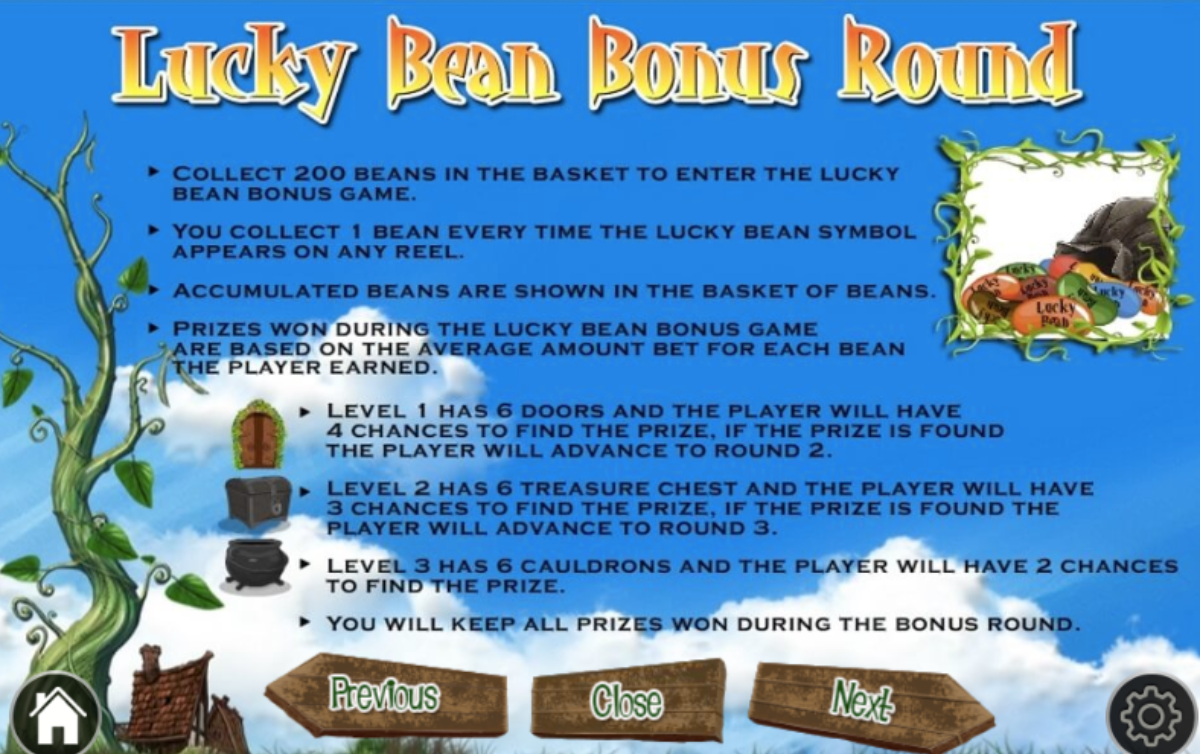 Lucky beans slots is a good game, but it is not one of Vegas technology best. The gameplay is good, and there are great graphics. The benefits of the game are the Lucky Bean bonus round, Instant prizes, the multipliers, the wild beanstalk, and free spins.
