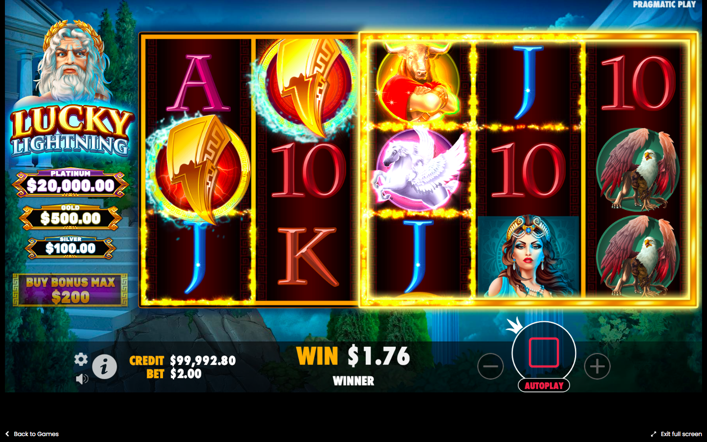 From Lucky Lightning, a player can get a minimum of 5 coins and up to 10,100 coins in winnings for just one spin.You can win this game by getting the Platinum Jackpot which is worth 10,000 times your original bet.