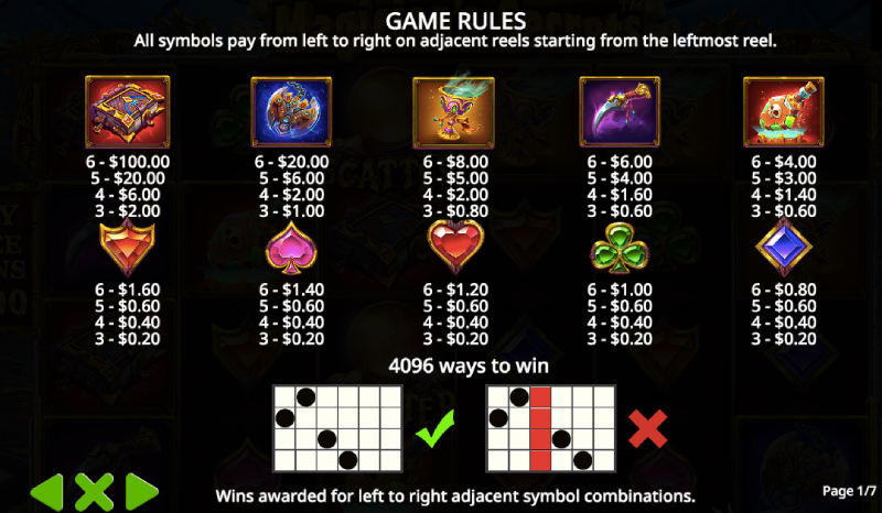The Magician’s Secrets is a magic-themed slot machine with six reels and 4096 possible payouts. Magician’s Secrets features multipliers up to x10 on expanding wild symbols, as well as sticky wilds. In addition, the Magician’s Secrets bonus feature is available.