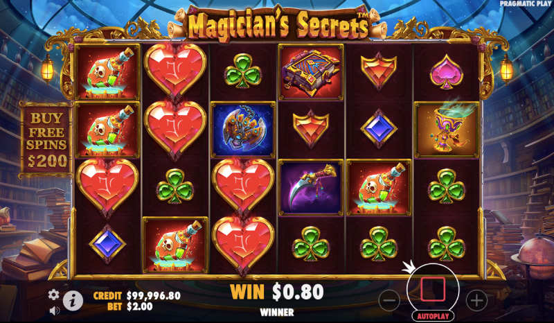 The Magician’s Secrets is designed for players who like gameplay that incorporates both traditional and innovative features. The base game is still exciting once wilds, scatters, or other unique symbols or features appear on the reels, but it reaches a whole new level when no feature is triggered.