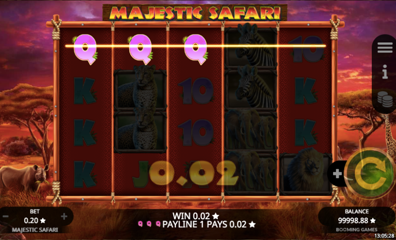 Majestic Safari accepts bets ranging from 0.10 to 20.00, providing a diverse range of options for different playing styles.