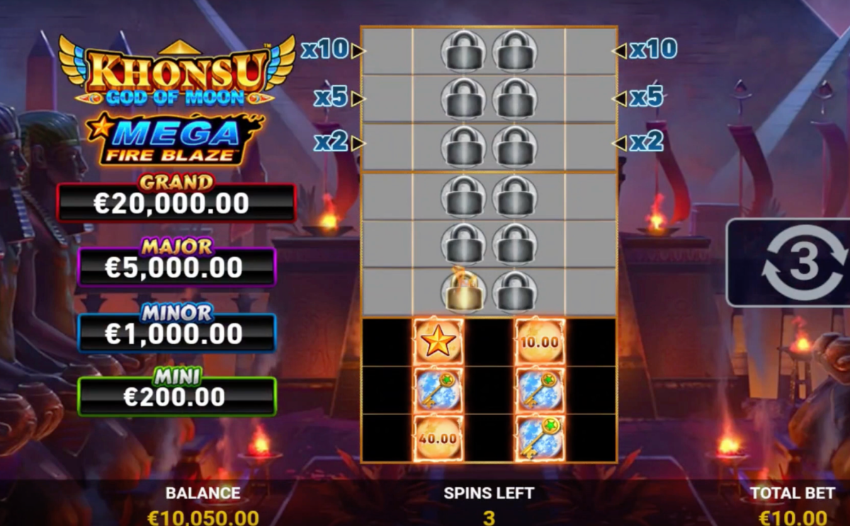 The betting range for each spin is from 10p to ÂŁ500 and the game has a RTP of 96.49%, which is higher than average. It has medium volatility, making it a well-rounded game. The previous game in the Fire Blaze series was noteworthy, and in this game, you can win multiple Grand Jackpots worth 2,000x each, which is different from the usual limit of winning only one instance of the Grand Jackpot. If you are interested, you should definitely consider trying out Khonsu: God of Moon.