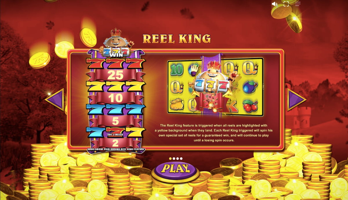 For example, when you land a mega King on the reels when you are betting one coin you can win anywhere from 20 – 200 coins. If you are wagering ten coins per spin, then you can win anywhere from 200 coins all the way up to 2000 coins. If you look at the pay table on the upper right-hand side of the game, you will see that it is very simple and straightforward.