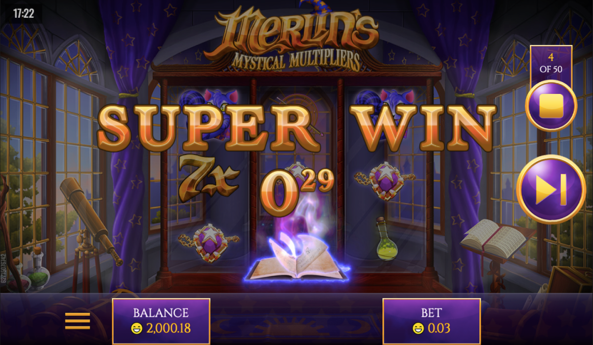 No Merlin-themed slot machine would be complete without seeing the wizard himself and if you are lucky enough to hit a multiplier he will surely appear, perhaps even showing you his famed book of spells and wizardry.