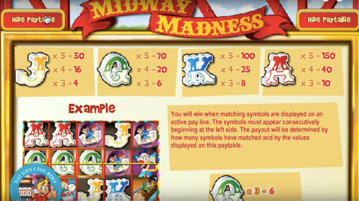 Imagine having a great time in an amusement park background that has adult and children’s rides. You can ride the flying rockets, go on a big wheel and even enter the log flume ride. Imagine you can do this without having to leave your house or office! The Midway Madness slot machine game features five reels with twenty pay lines.