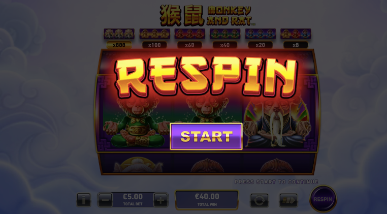 Rarestone Gaming has developed a 3-reel, 1-row slot called Monkey and Rat, which has an oriental theme featuring colorful monkeys and rats. If your win combination involves at least one Rat symbol, you will trigger the Respin Feature. To win the most amount of money, you must gather a set of 3 rats, and your possible jackpot is 888 times your bet. The theoretical percentage return to player (RTP) is 97.52%.
