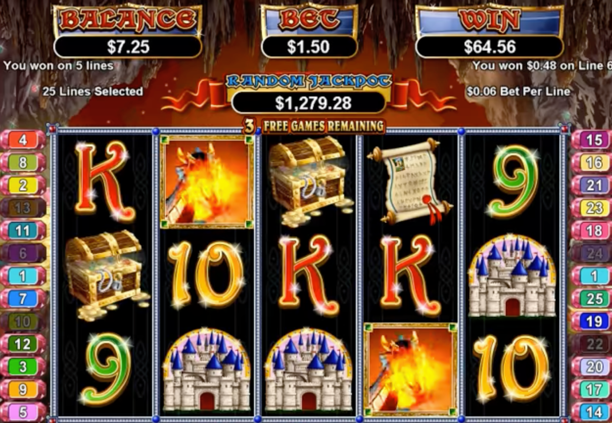 However, there are some good wins to be had with this adventurous video slot machine. In addition to the random progressive jackpots, you can win up to 20,000 coins as the grand prize. The way to win 20,000 coins is to land three of the dragon symbols on the reels at the same time.