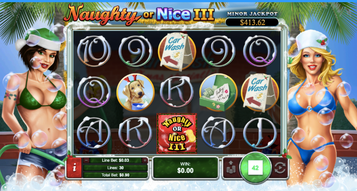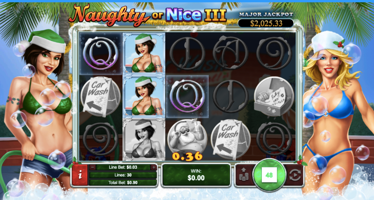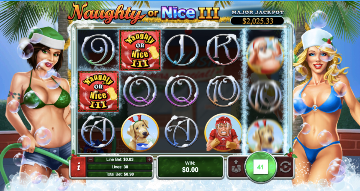 Before we tell you about the biggest ways to win playing Naughty or Nice III, you should know there are three random jackpots. It doesn’t matter how much money you are betting, it triggers at random whether you are playing for pennies of hundreds of dollars. The major jackpot begins at one thousand dollars, while the minor starts at $250. In addition to these random fixed-coin jackpots, there is a random progressive jackpot.