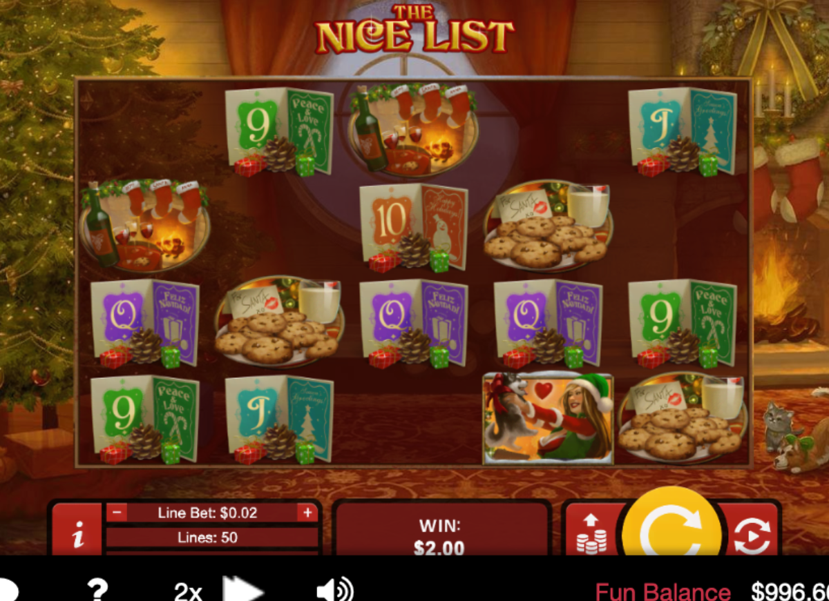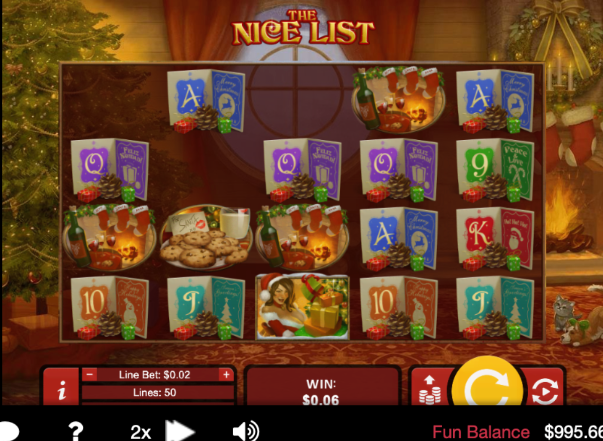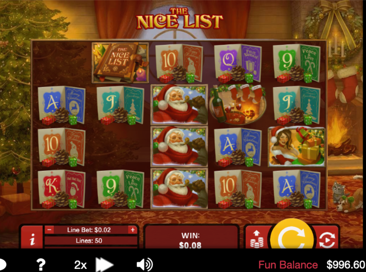 The Nice List is the latest addition to the Real Time Gaming (RTG) software library, and it is the sequel to The Naughty List.RTG released The Nice List in November 2015. The Nice List is a Christmas / Holiday themed video slot machine that has excellent graphics and amazing sounds.