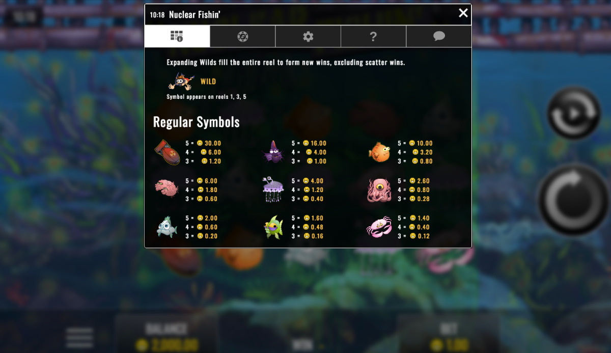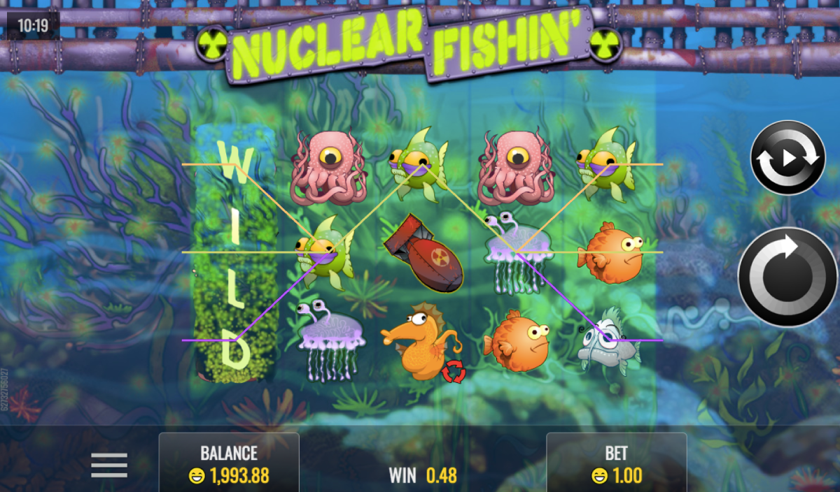Nuclear Fishin’ can be a rewarding game to play. It does not have a progressive jackpot, but it comes with many features. You can win much cash with the Scatter wins, bonus barrels, Going Nuclear cannot Lose Bonus Round and free spins.