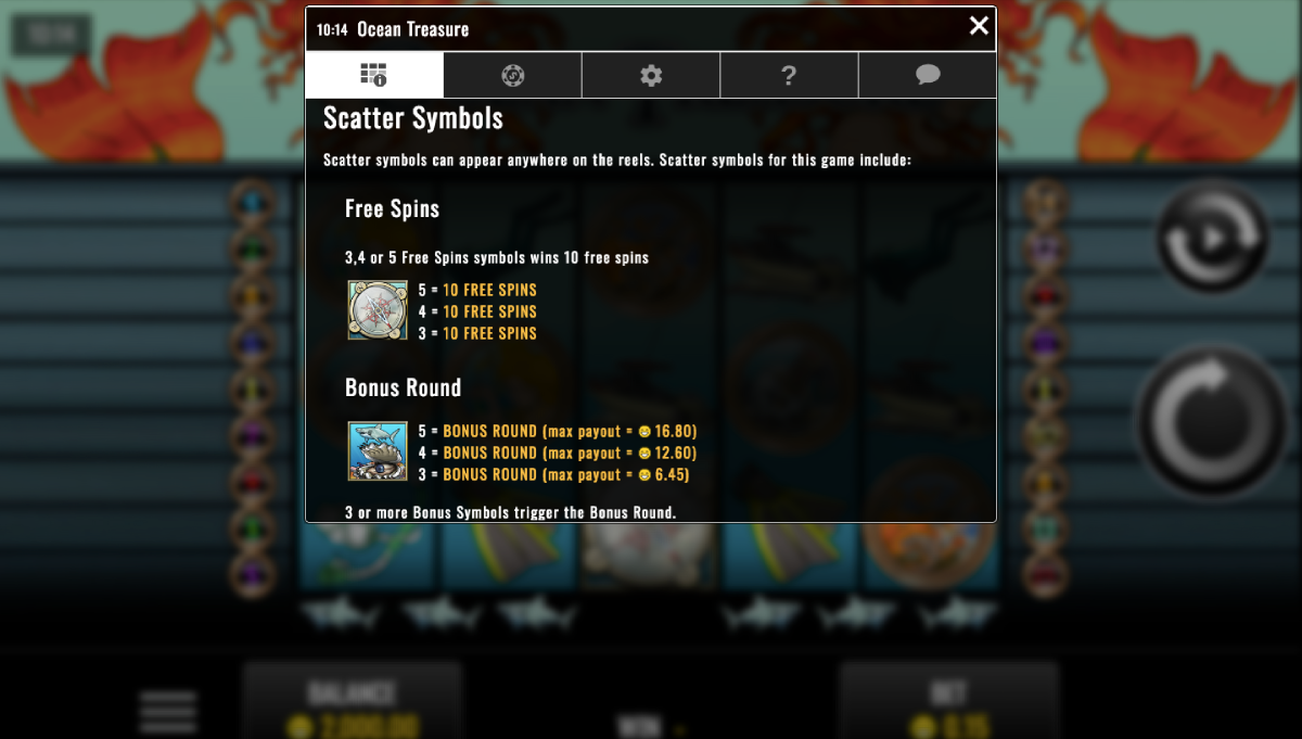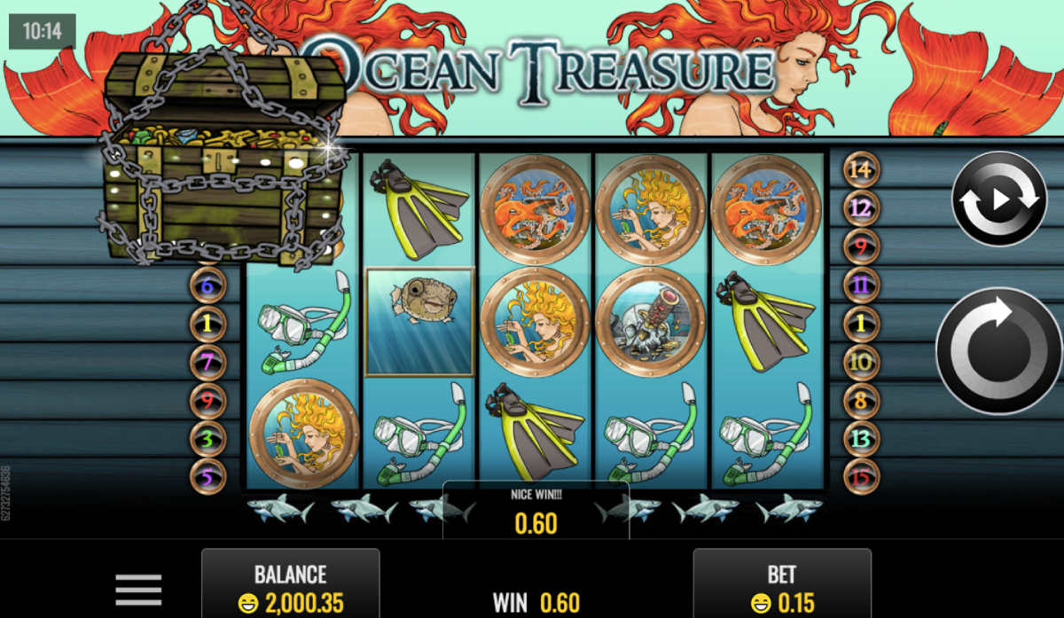 You can win awesome cash prizes instantly playing Ocean Treasure but not a progressive jackpot. This game has great multipliers and some great prizes like the Giant Clams Bonus Round; Scattered Compasses free spins bonuses, wild puffer fish, deep-sea divers, gold doubloons, beautiful blonde mermaids, and giant orange octopuses.