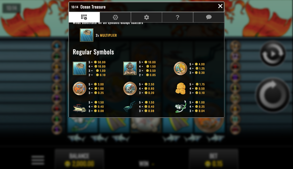 The biggest wins come from the wild puffer fish symbols. Land five of the puffer fish symbols on the wheels went up to 5000 coins. If you only land four of the wild puffer fish icons can win the 1000-fixed coin jackpot.