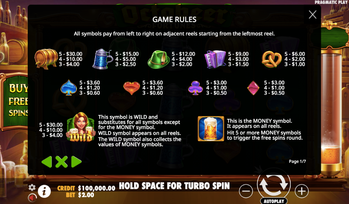 9 free spins are given to you, and it’s a progressive feature where you collect Money symbols for potentially gigantic wins.Does this game go beyond its chosen theme? Keep reading our Octobeer Fortunes review to find out what else lies in store.