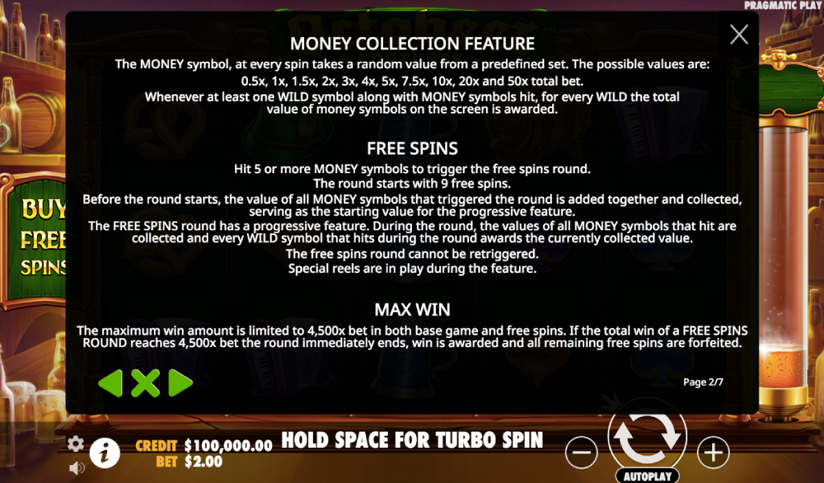 There are three bonus features in Octobeer Fortunes – a Money Collection option, a Free Spins feature, and the ability to buy free spins. Let’s have a look at how everything works.