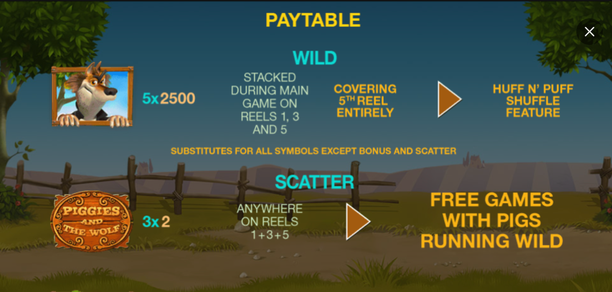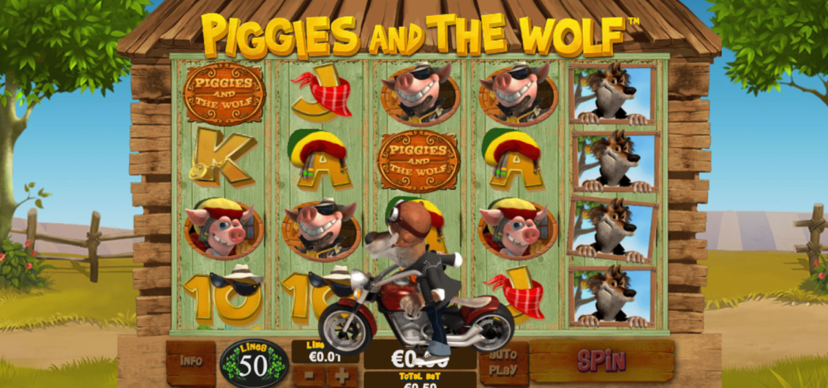 Playtech slot development team has decided to present the Piggies and the Wolf slot in a way where the Wolf is the main hero and struggles against three greedy pigs to bring joy to ordinary people.
