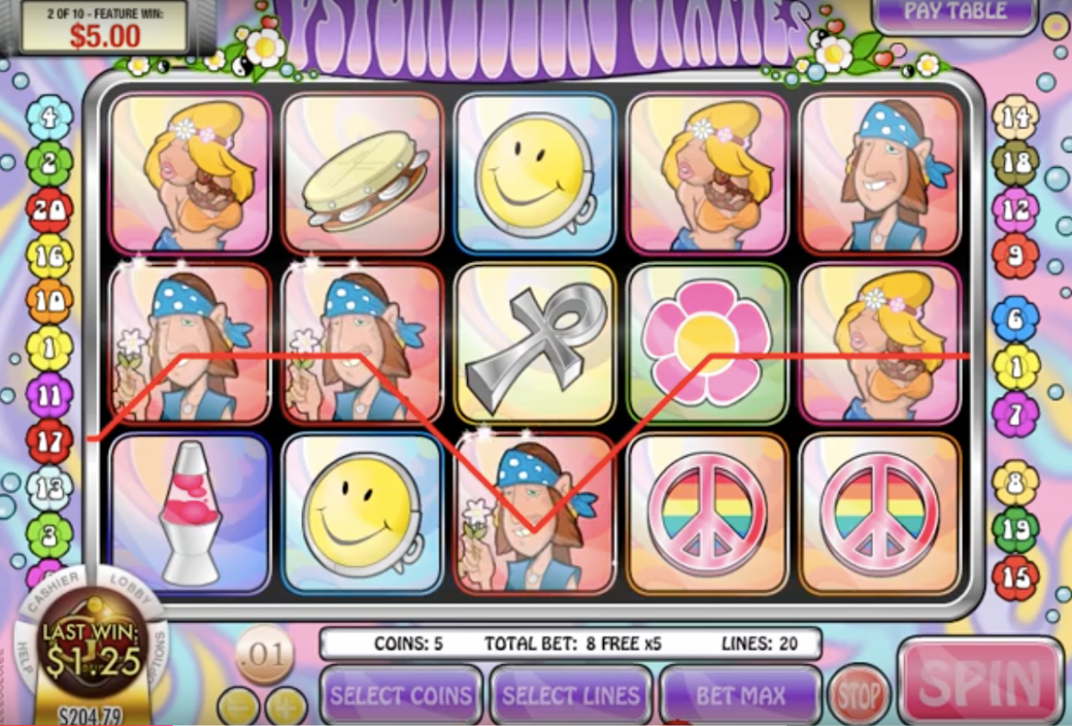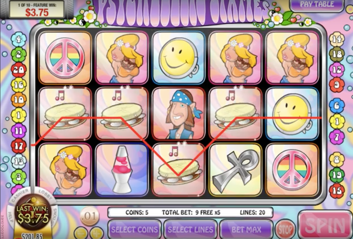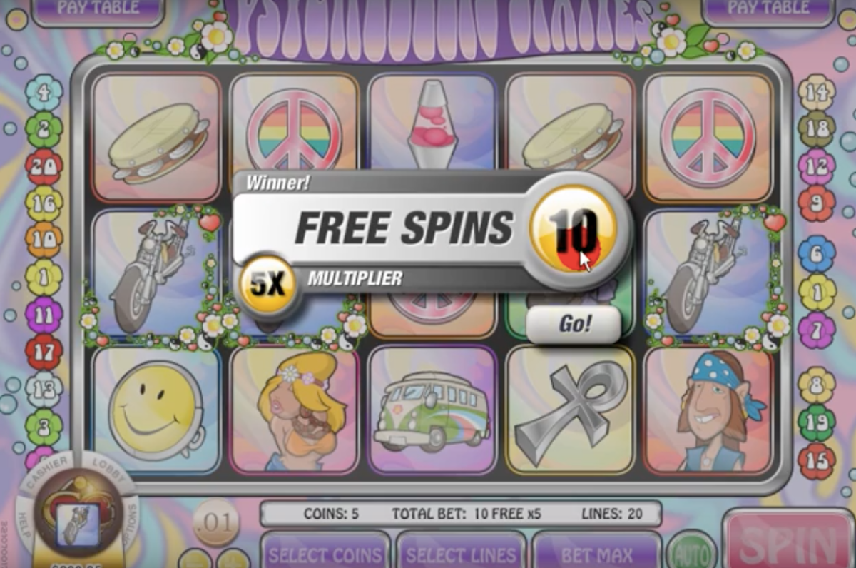 Start betting as little as one penny per spin playing the Psychedelic Sixties using cash or for fun. As you feel comfortable and want to increase your wins by triggering bigger multipliers, you could start to increase your bets.