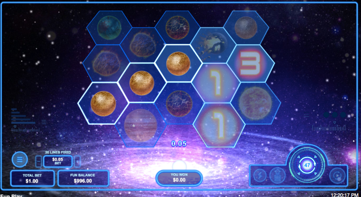 We also like slot machines that have higher volatility. However, that is our preference. Ultimately, the pulsar slot machine is a pretty low variance game. That said, it has cascading wins that can bring some decent wins. As a result of Cascading wins, you can land several wins in a row on the same spin. Moreover, you may notice the honeycomb structure the Reel Structure uses. More specifically, Pulsar is set up with symbols in the order of 2-3-3-3-2.