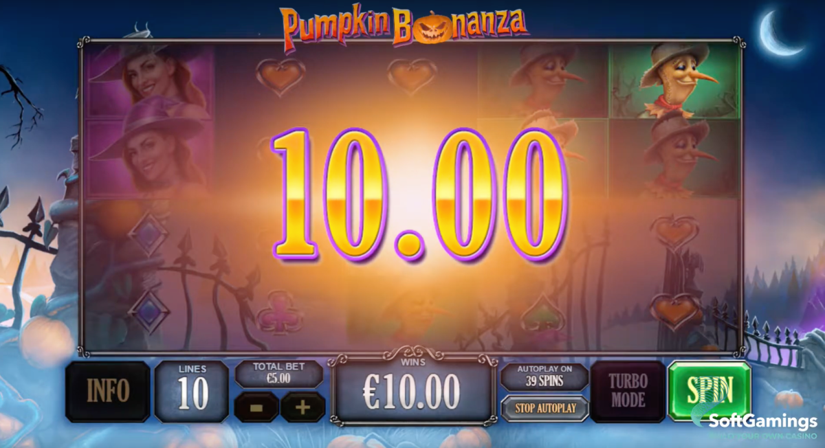 Pumpkin Bonanza is a game you can play on your phone, tablet or computer. It has 5 parts and 10 lines. To win, you need to match symbols in different ways. If you do this, all the symbols will turn into pumpkins and help you get more points.If you win, you will start the Bonanza Spin feature. All winning symbols become wild on the 3 middle reels. You get to spin again and might get wilds on all 5 reels. You can win up to 2,000 times your bet!