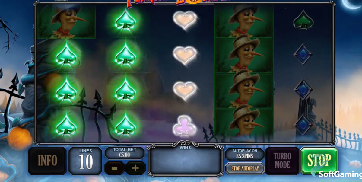 Pumpkin Bonanza has a special feature called the Bonanza Spin. This happens when you get a winning combination with both left to right and right to left, plus one wild symbol. All of the symbols from that spin become wild symbols on the 3 middle reels for another spin. During this extra spin, wilds can appear on all 5 reels!
