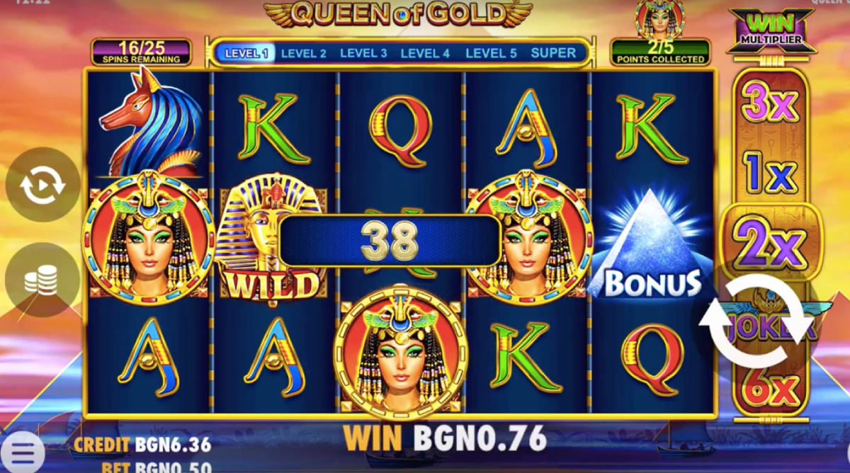When playing Queen of Gold you should search for the bonus game inside the Queen’s chamber. The graphics are excellence, and it is fun to play plus there are some excellent wins in this bonus game.