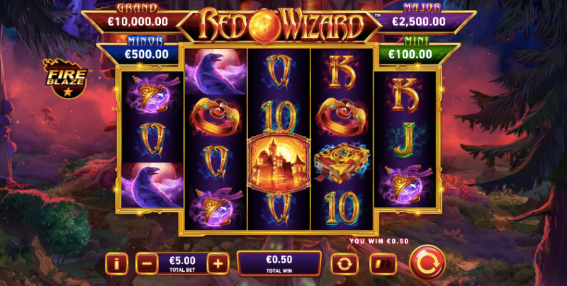 The Red Wizard slot is part of the Fire Blaze Jackpots series. It is designed really well. The layout does not change how you play the game. You can get free spins and make your winnings bigger, up to 16 times bigger! That means you can win 2,400 times what you bet!