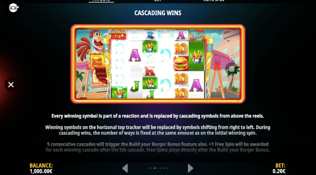 Score five or more successive wins or obtain three or more bonus symbols and you will be able to play the Build a Burger feature. In this Build A Burger feature, you can select items on the menu. You will be able to score extra free spins to put together a winning combination.