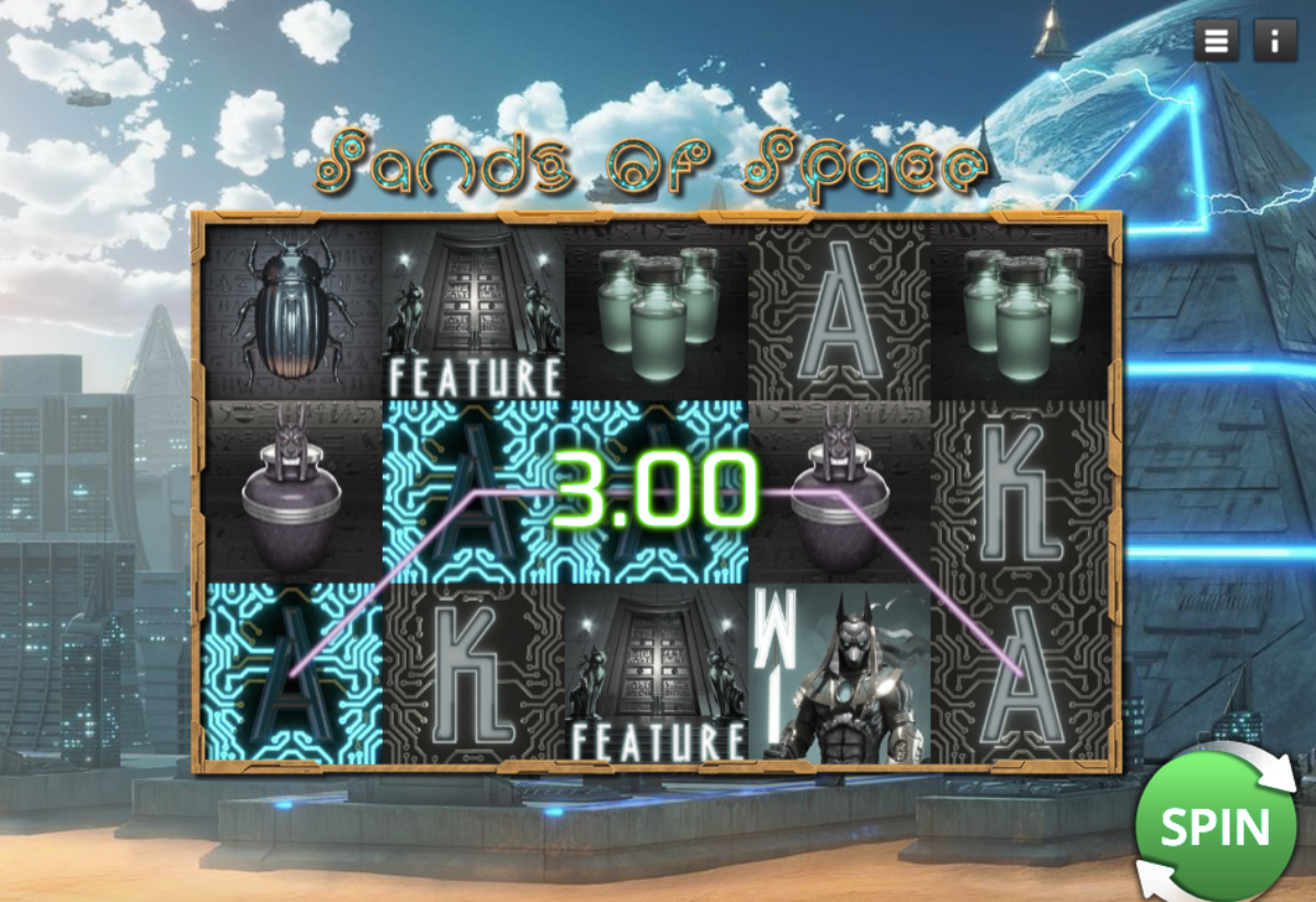 Sands of Space has two ways to win: On a three or more symbol scatter with an instant win of up to x30.The sparks scatter symbol will get you into the Sands of Space secret vault and pick between prizes when three or more appear on these reels.