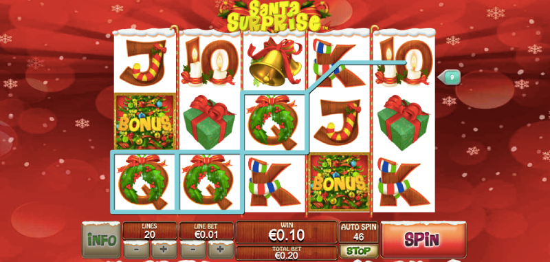 Santa Surprise is a game you can play online. It is about Christmas. There are 5 reels and 3 rows with symbols on them. You can win prizes by spinning the reels and matching the symbols in 20 different ways. There is also a bonus round and a gamble feature to give you more chances to win!