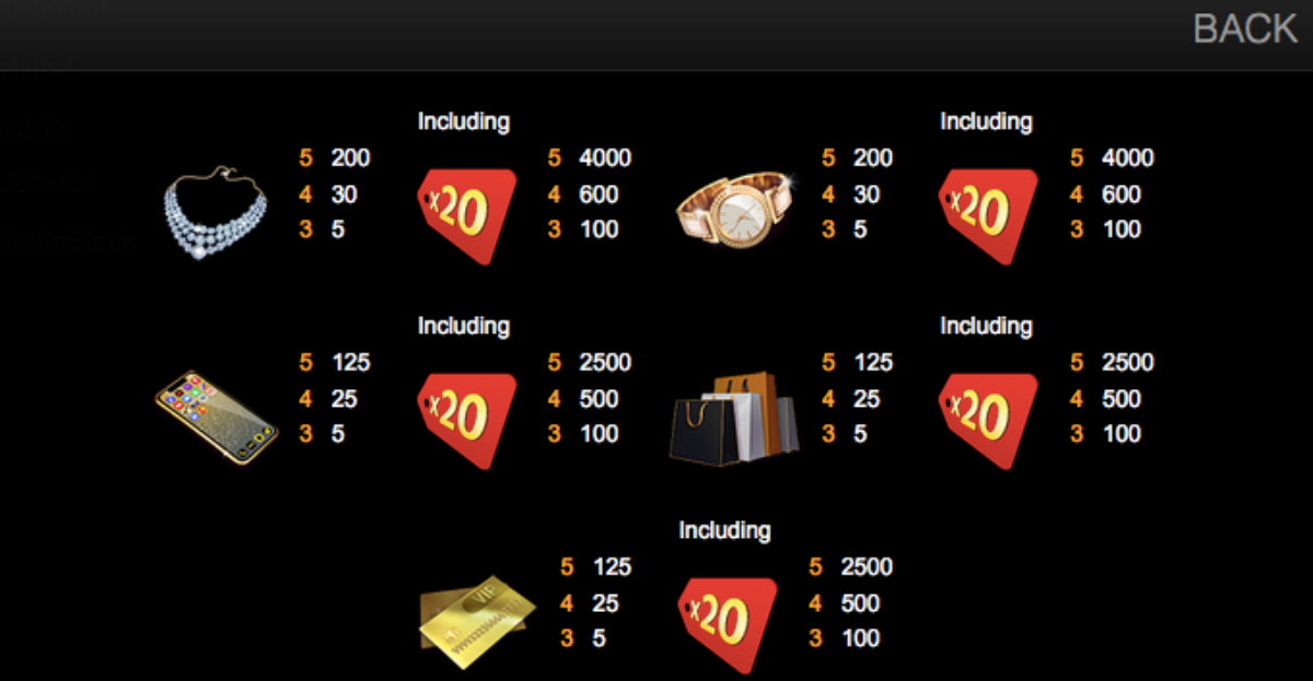 Get 3 or more scatters to activate 9 Free Games, and enjoy Shopping Spree II without any cost. During these rounds, symbols that indicate 100, 200, 300, 400 or 500 bonus points can appear on each reel and the Bonus Tally counter will add them all up for you. Unfortunately there are no scatters in the Free Games so they won’t be able to retrigger at this time.