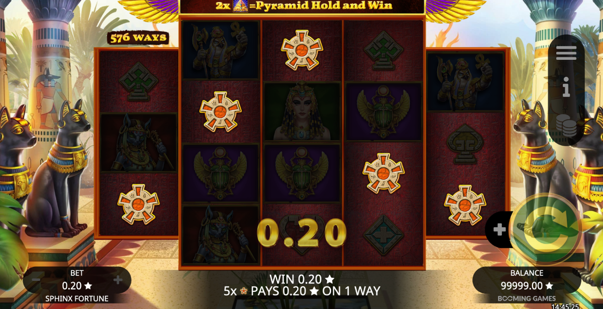 Although Sphinx Fortune Hold and Win is a great game overall, we are disappointed with its RTP as it is slightly below the industry average. Nonetheless, the RTP is still at 95.32%, so we can forgive this slight difference. Moreover, the game’s high volatility means that wins will not come very often, but they can be substantial when they do.