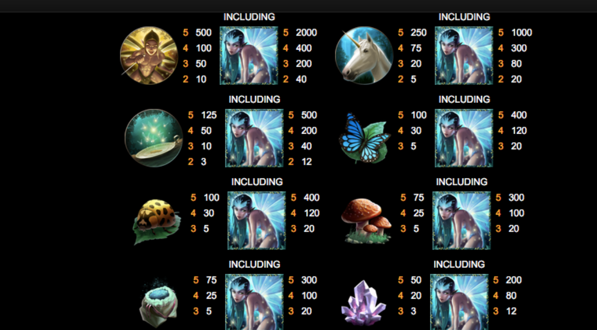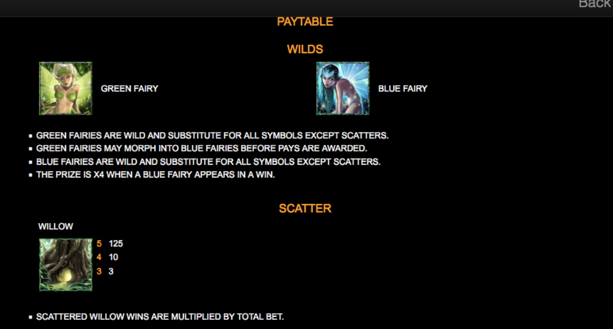 Once you trigger the lucky feature, the game moves from one up to five reels into a supercharged bonus round with wild reels. If you want more free spins, look out for the Green Faires as they are wild. As a result, they replace all other icons except the scatter, which is the blue fairy.