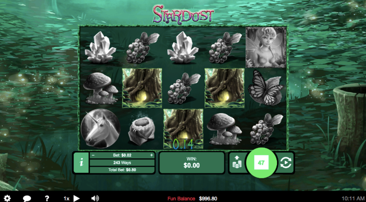 Also, the other symbols pay out well. Look out for the coke berries, mushrooms, violet crystals, and flowers. While Stardust does not have a progressive jackpot, you can trigger the 2,000X multiplier.