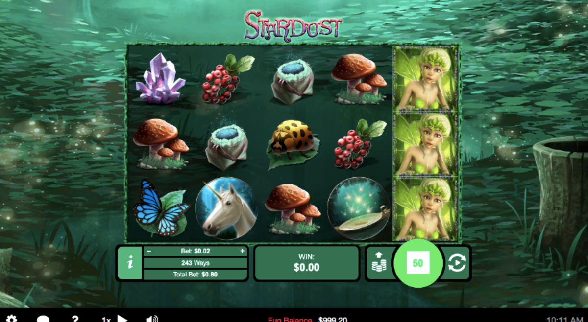 In Stardust, you will have tons of ways to win. Furthermore, when you land the fairies on the reels, get ready for some excitement. The fairies are the wild multipliers but not the actual wild symbols. Also, you can score magical rewards up to 50 free spins with these wild reels!