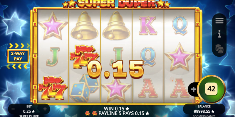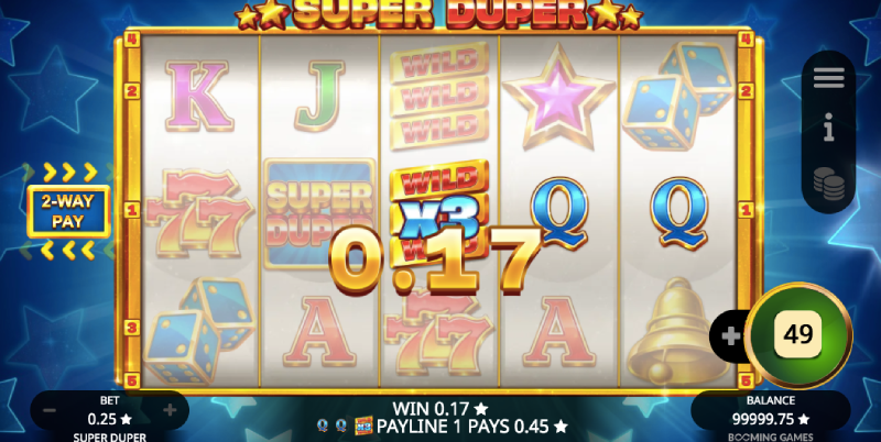 You can play the Super Duper slot demo for free and read a review of the game, which is made by Booming Games. It has classic-themed features, including Stacked and Multiplier Wilds, Multiplier Free Spins, and rewards of over 6,000 times the bet. You can also claim a bonus when you play.