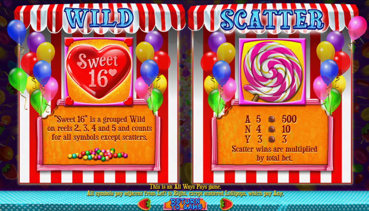 Sweet 16 slot machine is an excellent choice for the low stake as well as mid-stake rollers. Though a candy theme may not appeal much to men, other aspects of the game are excellent.